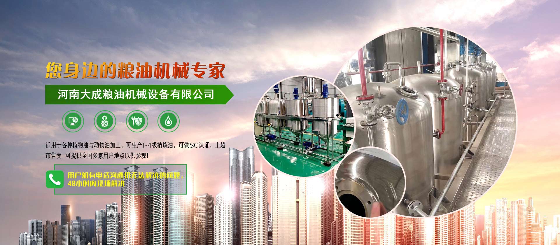食用油精煉設備_油脂浸出設備_榨油機全套設備--河南大成機械設備有限公司是專業(yè)從事油脂精煉設備、油脂浸出設備、榨油設備等各類型油脂加工設備研制與生產的高新技術企業(yè)。